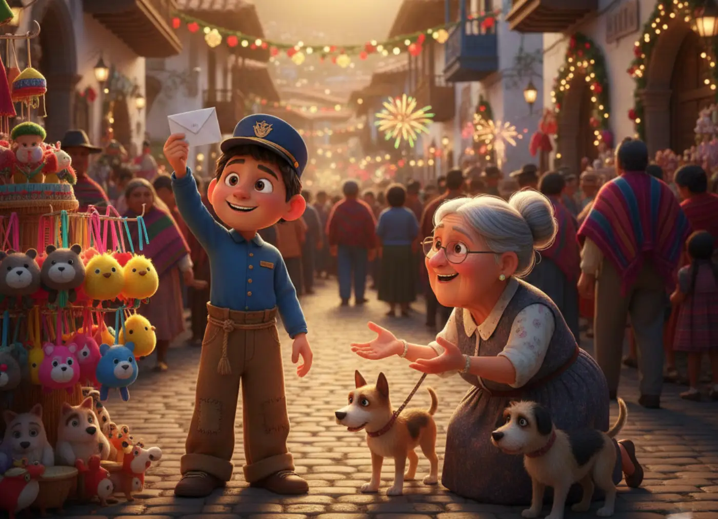 El cartero conmovido lo conversó con sus compañeros y nació la idea de hacer una colecta. Muchas personas se involucraron, cada quien aportando lo que podía. Se juntaron trecientos soles. El cartero emocionado los cambió en el banco por billetes nuevecitos, los metió en un sobre y se dirigió a la dirección del remitente.