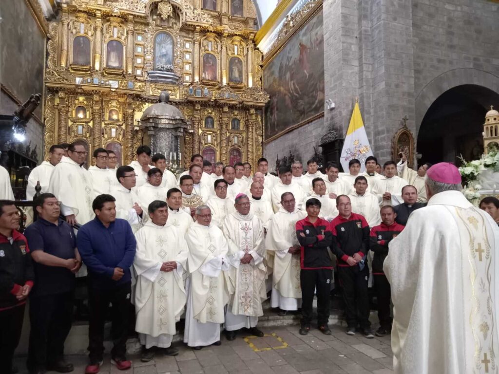 Aquel miércoles, rodeados de extraordinarios retablos barrocos que embellecen la Catedral de Huamanga, única en América Latina, más de setenta sacerdotes participaron de la celebración Eucarística.