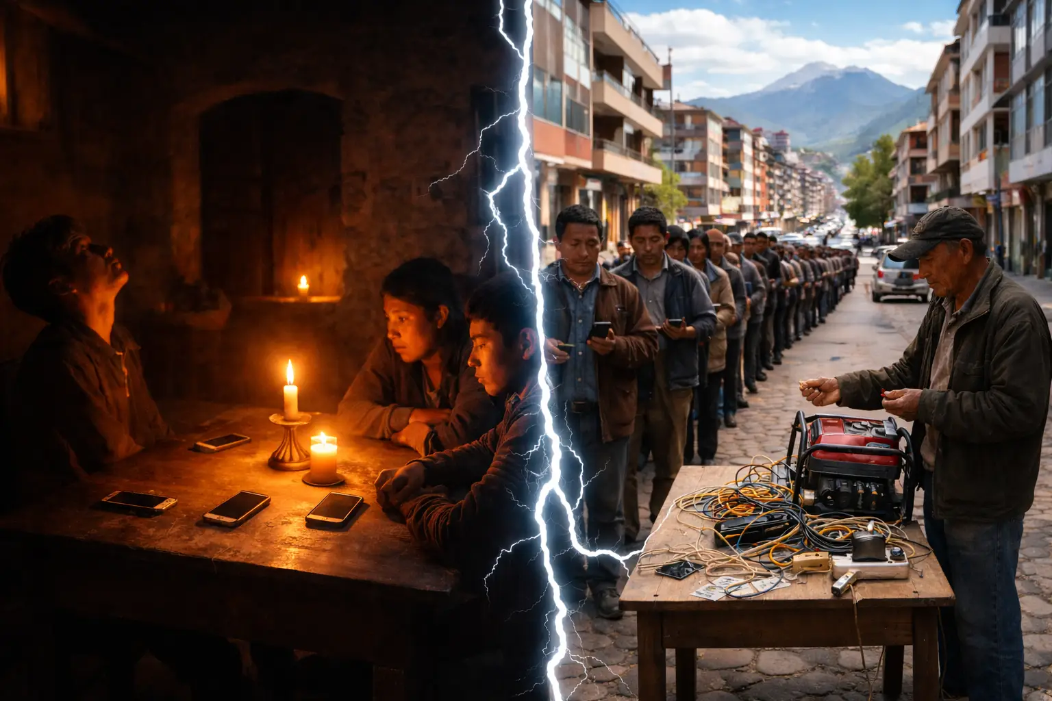Varios vecinos habilitaron generadores eléctricos y, entre cables y extensiones domésticas, ofrecieron un servicio puntual y urgente: recargar celulares por cinco soles.