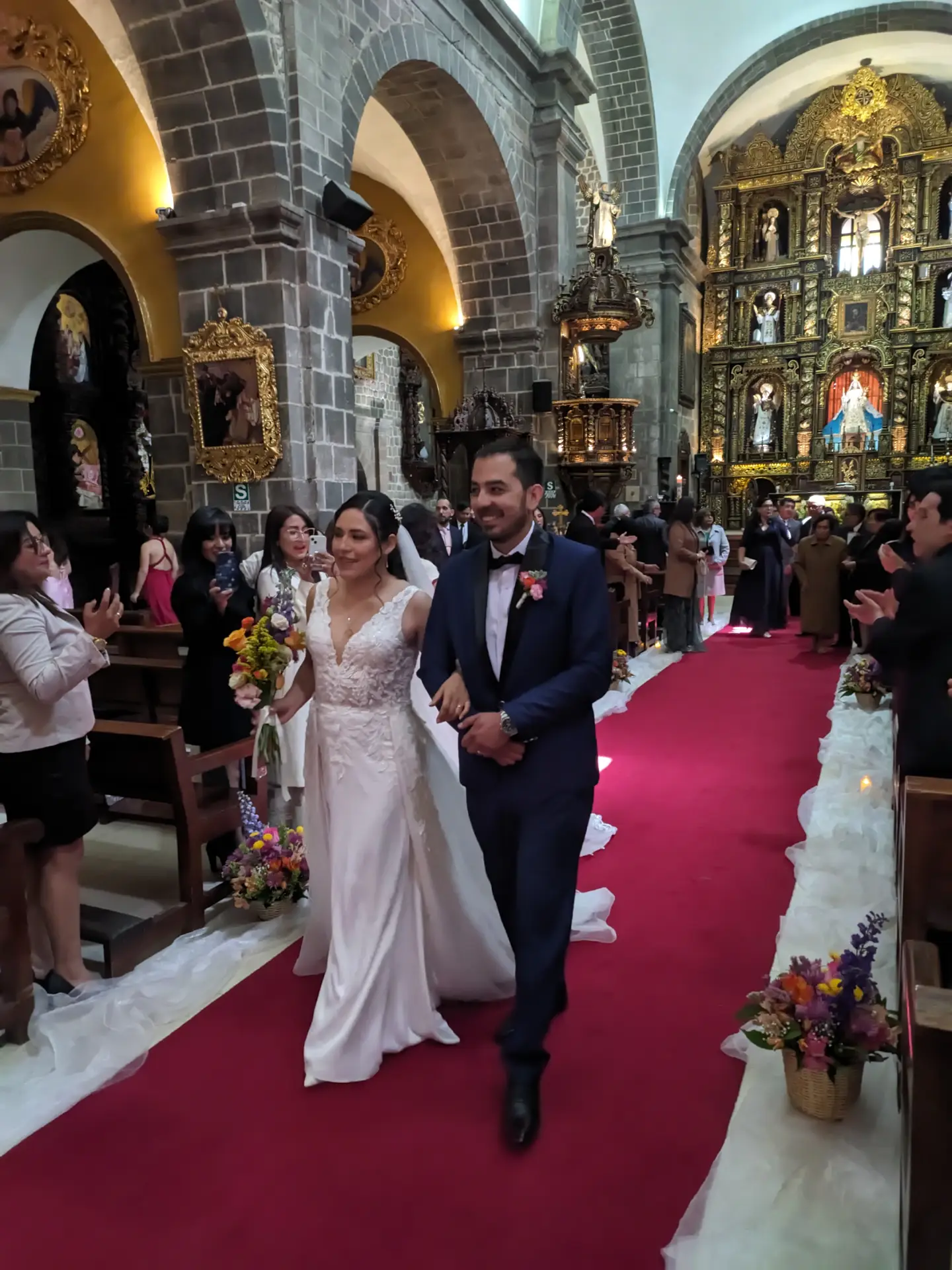 Llegué justo cuando empezaba el rito nupcial, con el aliento agitado y el orgullo magullado. Entré riéndome de mí mismo, pero pronto la majestuosidad del templo y la ceremonia me llamaron al orden, las naves elegantes del templo, los altares finamente tallados y recubiertos en pan de oro, los lienzos de gran valor histórico y la delicadeza de cada detalle ornamental creaban un ambiente de profunda serenidad y reverencia.