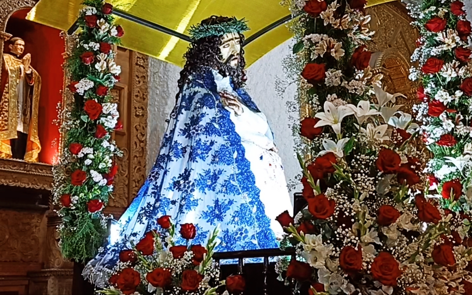 El Señor Justo Juez, que es el Cristo flagelado con un rostro adolorido por los golpes inflingidos,
